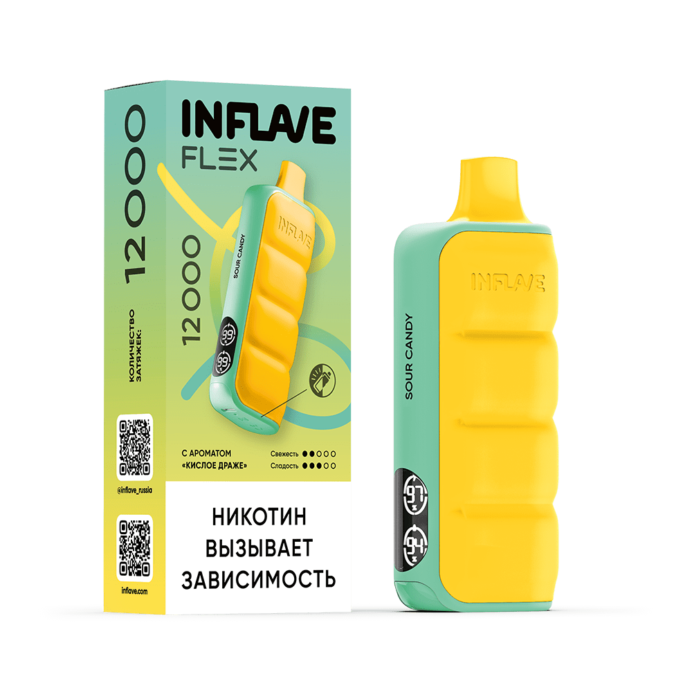 Количество затяжек, шт12000 Крепость, %2 ЛинейкаINFLAVE FLEX 12000